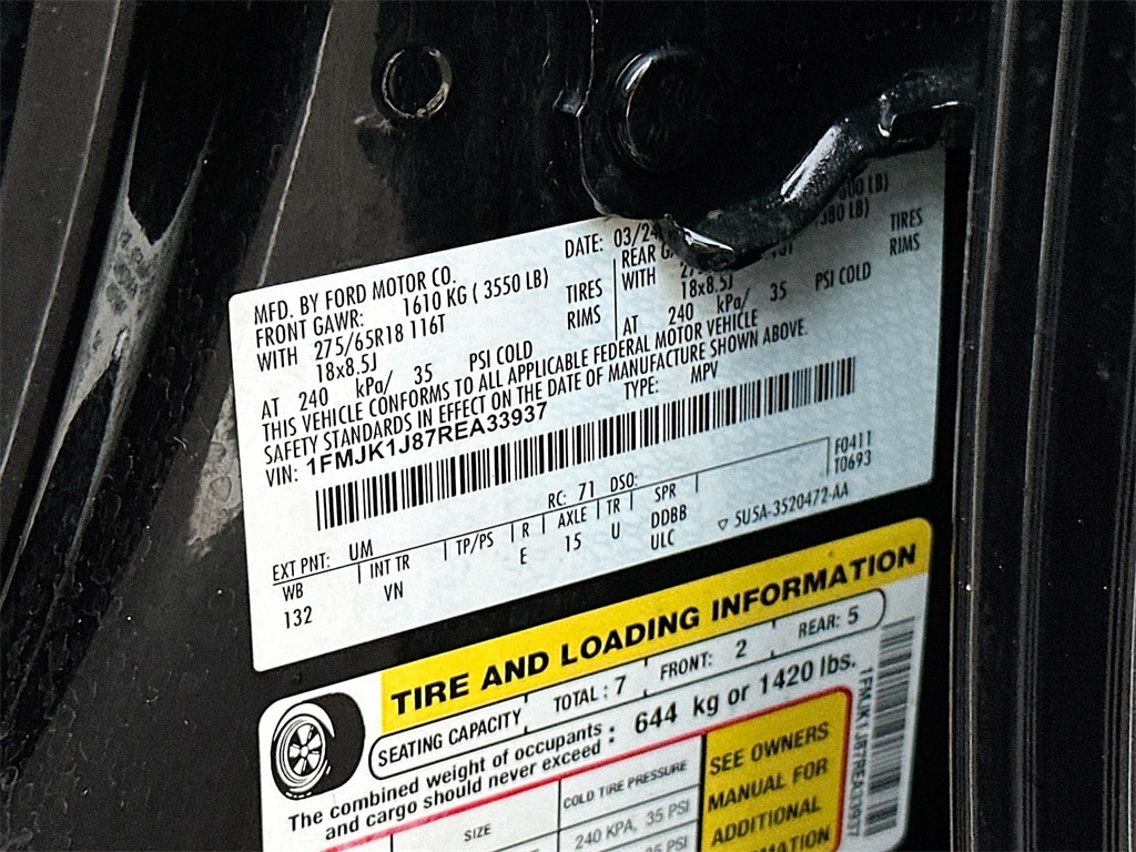 CLEAN CARFAX, ONE OWNER, BACKUP CAMERA, BLUETOOTH,HANDS FREE,BLUETOOTH,SYNC, KEYLESS ENTRY, 110V/150W AC Power Outlet, 2nd Row Power-Folding Captain's Chairs, 3rd Row Vinyl Power-Folding Head Restraints, 4-Door Intelligent Access (Lock/Unlock), Accent Color Painted Rear Bumper, ActiveX-Trimmed 1st & 2nd Row Seats, Advanced Security Pack, Ambient Lighting, Equipment Group 202A High Package, Heated Steering Wheel, Heated/Ventilated Front Seats, Navigation system: Connected Navigation, Power Liftgate, Power Tilt/Telescopic Steering Wheel w/Memory, Power-Adjustable Pedals w/Memory, Power-Folding Sideview Mirrors w/Autofold, Remote Start, SecuriCode Keyless Entry Keypad, Wireless Charging Pad.