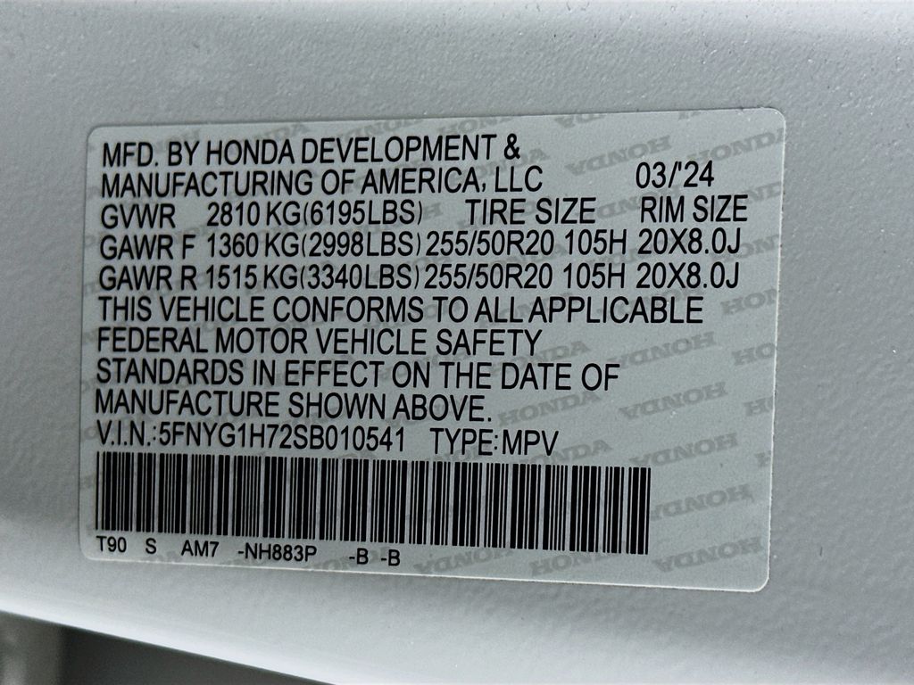 - Front tires: 255/50HR20.0