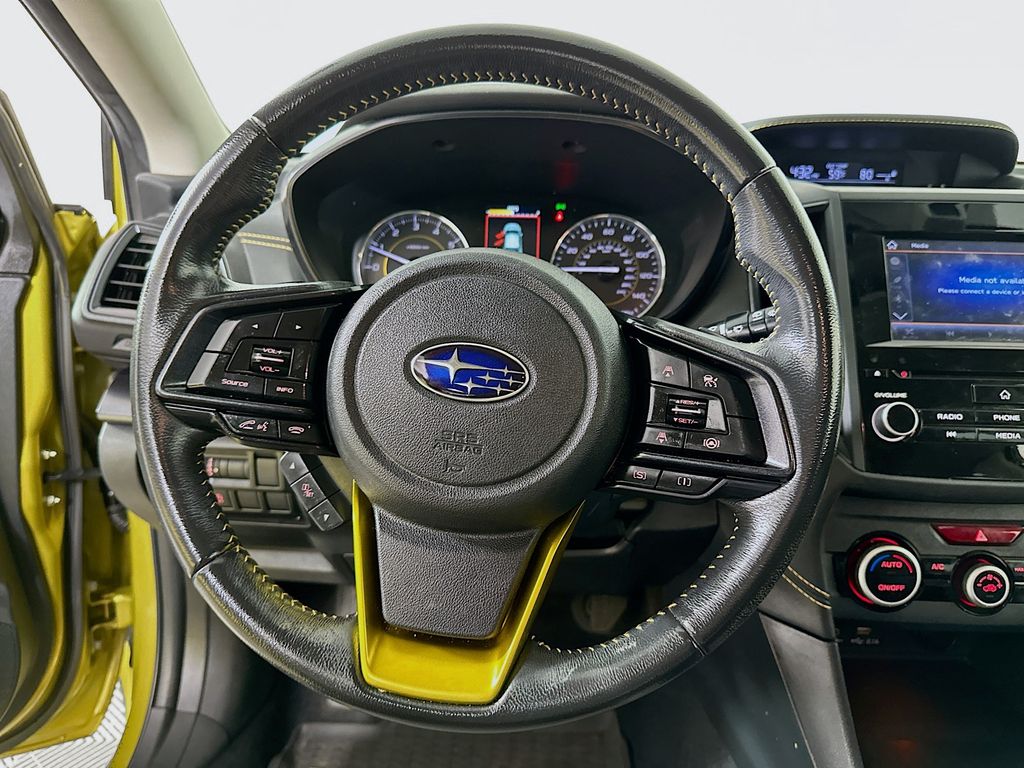 SUBARU CERTIFIED PRE-OWNED, Crosstrek Sport, 4D Sport Utility, 2.5L 4-Cylinder DOHC 16V, Lineartronic CVT, AWD, Plasma Yellow Pearl, Gray W/Yellow Stitching Premium Synthetic, 4-Wheel Disc Brakes, 6 Speakers, ABS brakes, Air Conditioning, All-Weather Floor Liners, AM/FM radio: SiriusXM, Automatic temperature control, Brake assist, Dual front impact airbags, Electronic Stability Control, Emergency communication system: STARLINK Safety and Security (Subscription Required), Exterior Parking Camera Rear, Four wheel independent suspension, Front Bucket Seats, Front Center Armrest, Front fog lights, Fully automatic headlights, Heated door mirrors, Heated Front Bucket Seats, Illuminated entry, Leather Shift Knob, Low tire pressure warning, Occupant sensing airbag, Outside temperature display, Overhead airbag, Panic alarm, Power door mirrors, Power steering, Power windows, Radio: Subaru STARLINK 6.5" Multimedia Plus System, Rear Seatback Protector, Remote keyless entry, Security system, Speed-sensing steering, Split folding rear seat, Standard Model, STARLINK/Apple CarPlay/Android Auto, StarTex Upholstery, Telescoping steering wheel, Tilt steering wheel, Wheels: 17" x 7.0J Alum Alloy Dark Gray Met Finish.