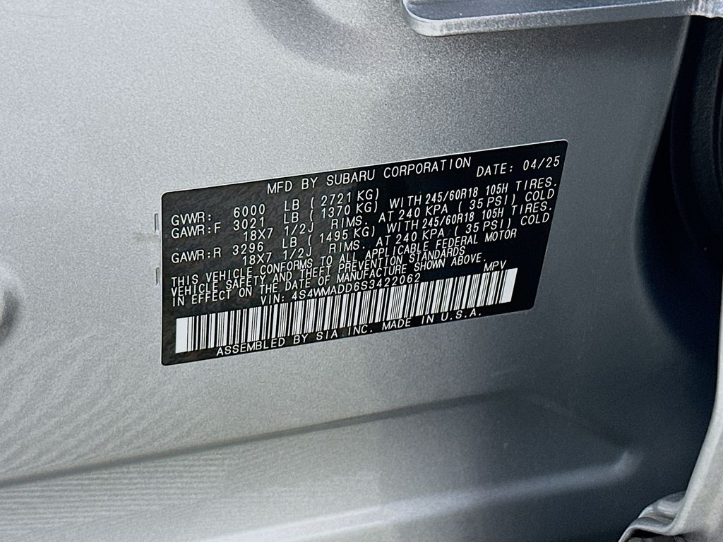 CARFAX CERTIFIED, SUBARU FACTORY CERTIFIED, 3RD ROW SEATS, CLEAN CARFAX, Ascent Premium, 4D Sport Utility, 2.4L 4-Cylinder DOHC 16V, Lineartronic CVT, AWD, Ice Silver Metallic, Black Cloth, 3rd row seats: bench, 4-Wheel Disc Brakes, 6 Speakers, ABS brakes, Air Conditioning, AM/FM radio: SiriusXM with 360L, Apple CarPlay & Android Auto, Auto High-beam Headlights, Auto-dimming Rear-View mirror, Automatic temperature control, Brake assist, Delay-off headlights, Driver door bin, Driver vanity mirror, Emergency communication system: MySubaru Safety (3-year free trial), Exterior Parking Camera Rear, Four wheel independent suspension, Front anti-roll bar, Front Bucket Seats, Front Center Armrest, Front dual zone A/C, Front reading lights, Fully automatic headlights, Garage door transmitter: HomeLink, Heated door mirrors, Heated Front Bucket Seats, Illuminated entry, Leather Shift Knob, Leather steering wheel, Low tire pressure warning, Occupant sensing airbag, Outside temperature display, Overhead airbag, Overhead console, Panic alarm, Passenger door bin, Power door mirrors, Power driver seat, Power Liftgate, Power steering, Radio: Subaru 11.6" Multimedia Plus System, Rear air conditioning, Rear reading lights, Rear window defroster, Rear window wiper, Remote keyless entry, Security system, Speed control, Spill Resistant Coated Cloth Upholstery, Standard Model, Telescoping steering wheel, Tilt steering wheel, Traction control, Turn signal indicator mirrors, Variably intermittent wipers, Wheels: 18" x 7.5 J Gray Alloy w/Machine Finish.